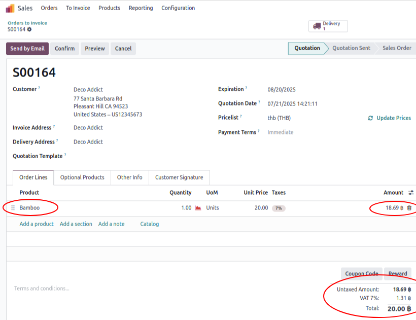 - Total (Customer Pays): 20 THB (already includes VAT)