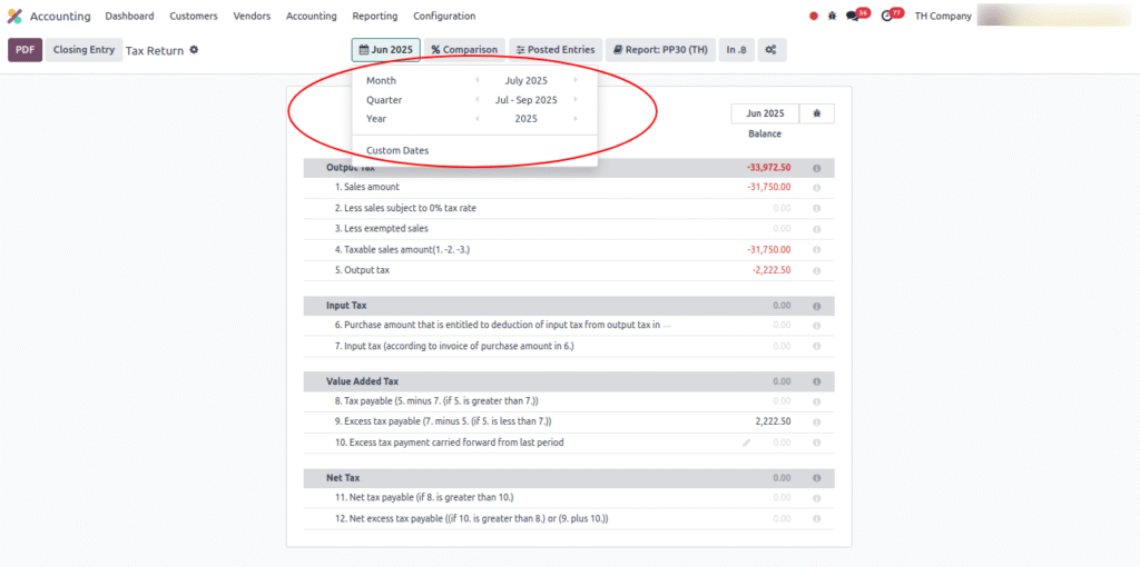 The monthly PP30 report is mandatory in Thailand. Odoo simplifies this: