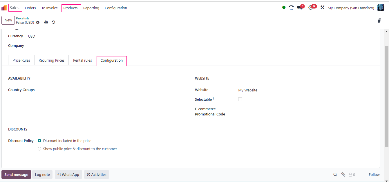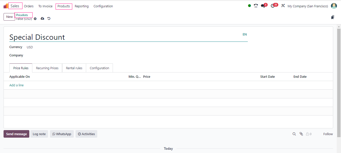 - When you are making or updating a sales order, Odoo is smart enough to apply the right discounts automatically. It follows the rules you set up in the pricelist.
