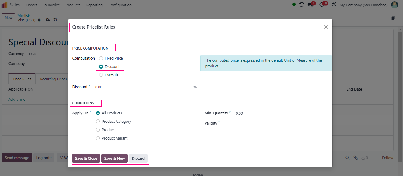 Now, let’s talk about the numbers. When it comes to discounts, Odoo gives you a bunch of options.