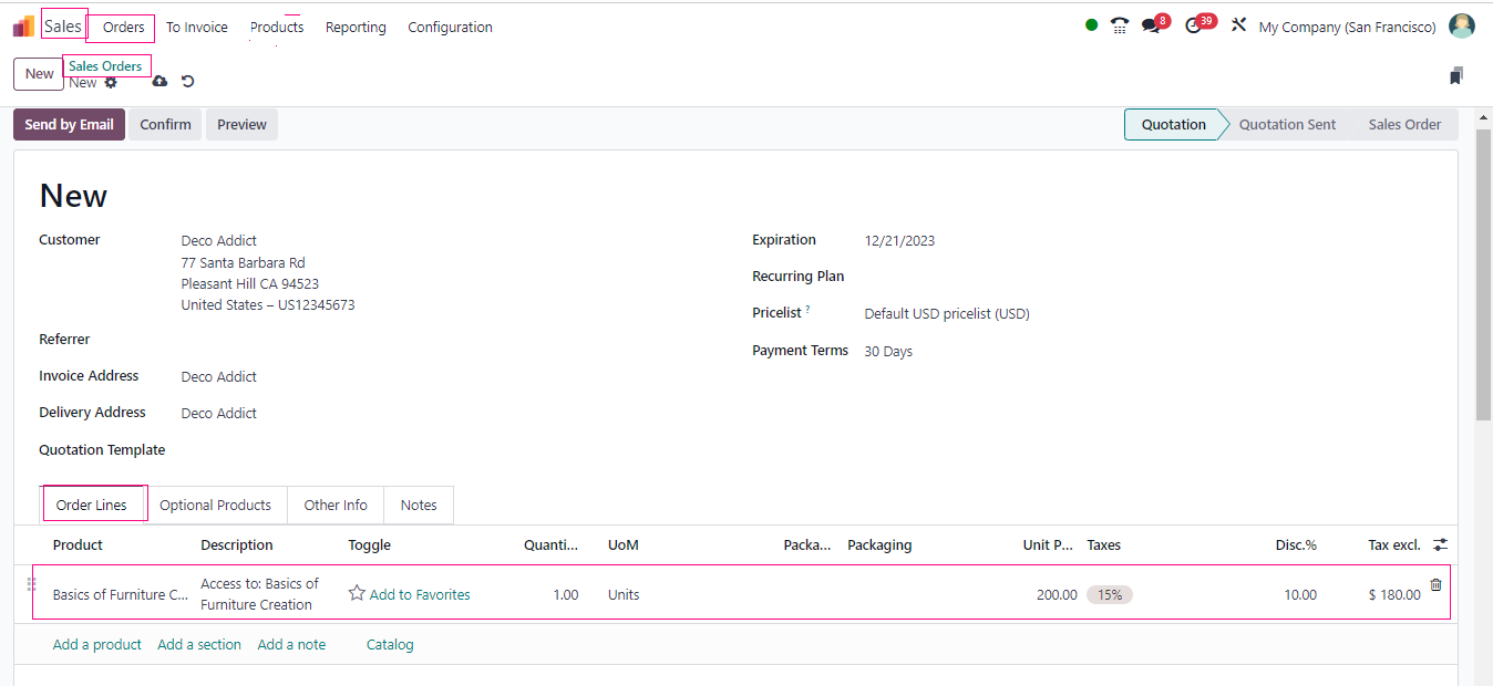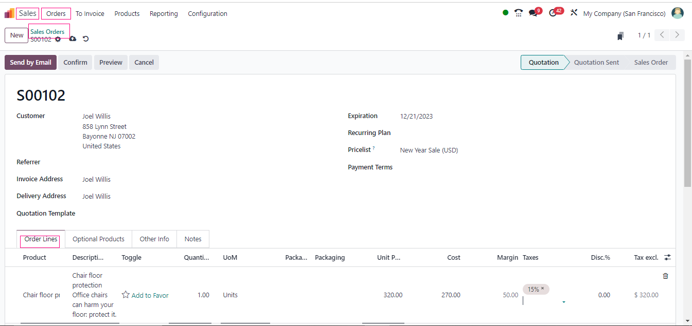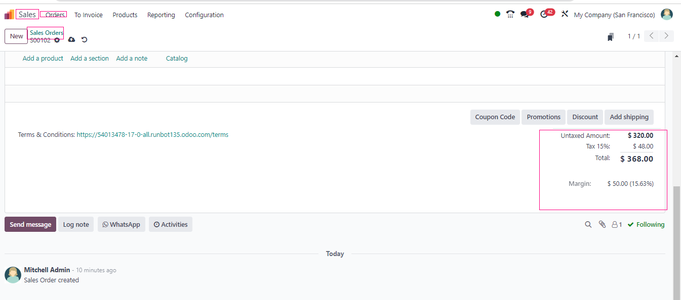 - Watch the magic happen! Odoo does the work for you and calculates the final price.