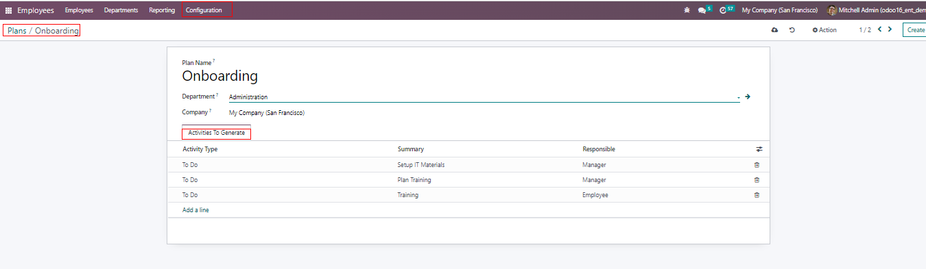 Team Onboarding : Odoo 16 allows managers to assign onboarding activities to specific plans, and managers can ensure that all team members receive the necessary training and support.