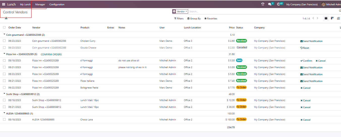 Administrative users can conveniently monitor orders from different vendors, streamlining management .