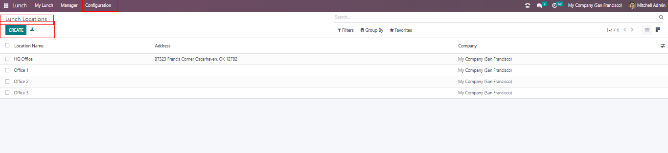 By configuring lunch delivery locations, organizations facilitate vendor deliveries across various branches.