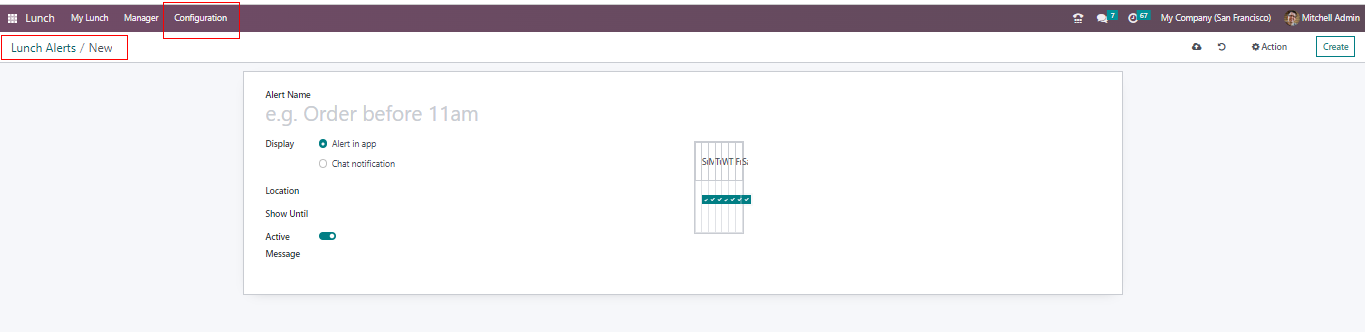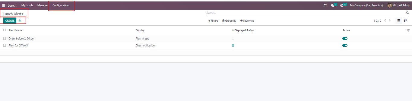 The Alerts section acts as a platform for notifying users about crucial lunch – related updates.