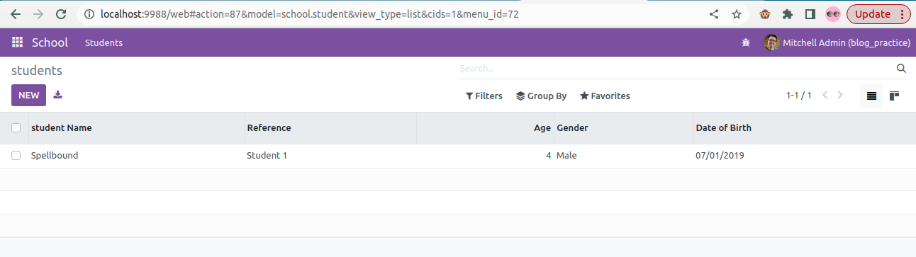 Form views are used to display the data from a single record. It is used to create and edit single records. This is the default form view. Here we can see the field to add name, picture and other details.