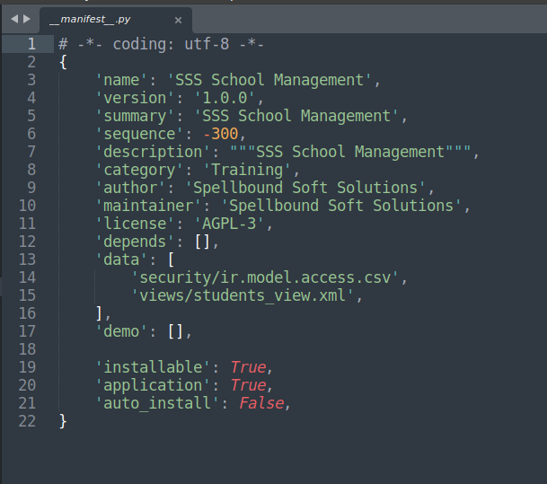 The __manifest__.py file serves as the entry point for an Odoo module. It contains vital metadata such as the module’s name, version, description, author information, dependencies, and other configuration options. We will explore the structure and significance of the manifest file and how it influences the behavior of the module.