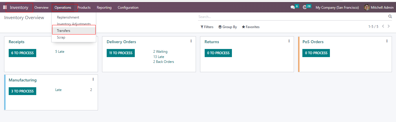 - Navigate to the Inventory module, which can be found under the Operations tab.