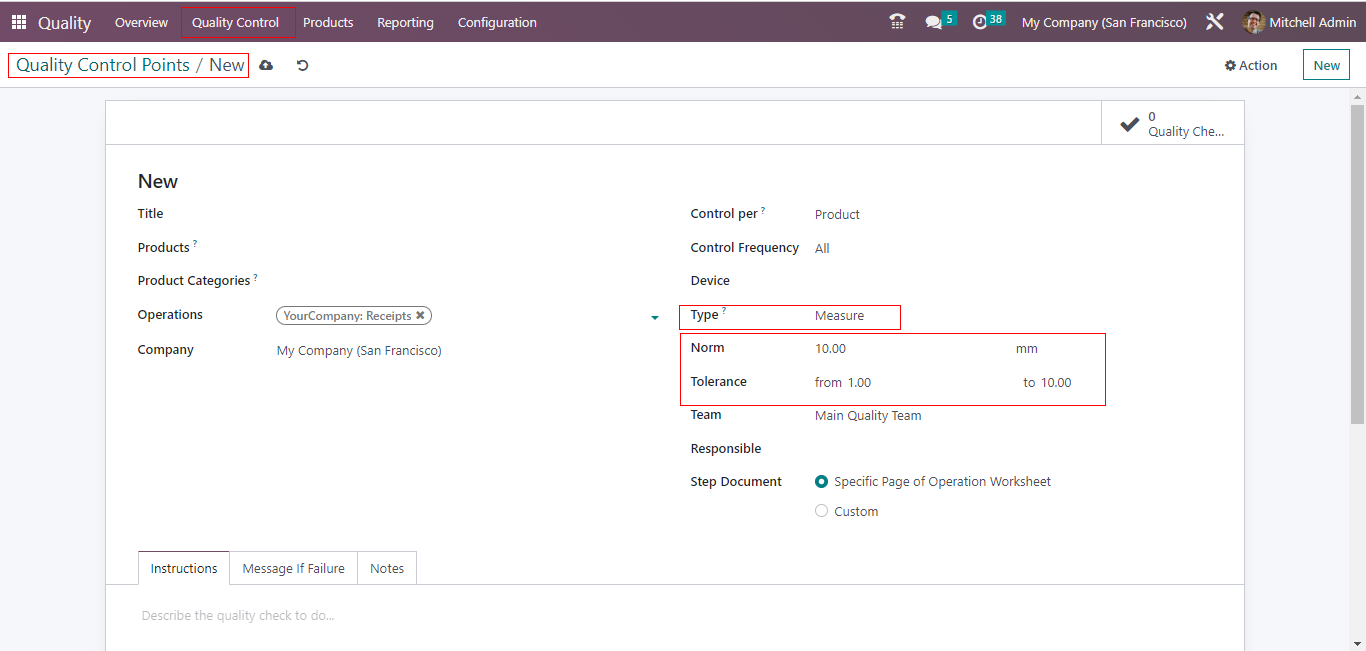 Instructions : Describe the specific instructions for the quality check in the instructions tab