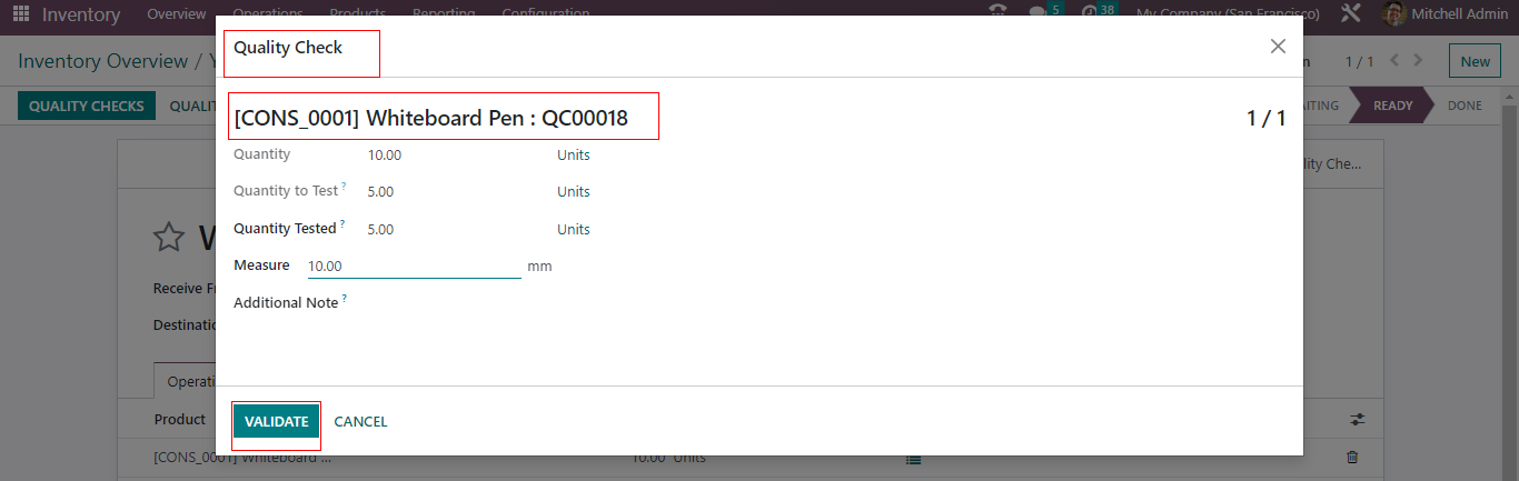 In this context , with a quantity of 10 , you should enter a measurement that falls within the range of 01 to 10.Afterward , proceed to validate the quality checks.