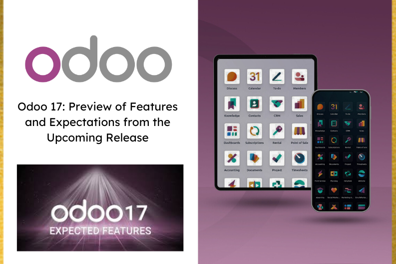 In Preparation for the upcoming Odoo Event in November 2023 , where official release of Odoo 17 is expected , we ‘re here to delve into the exciting release of Odoo 17’s new features. This blog post aims to provide analysis of Odoo 17 features , drawing from both official sources and insights circulating on social media , as this year’s Odoo experience promises to showcase the latest advancements and experts insights across various modules.