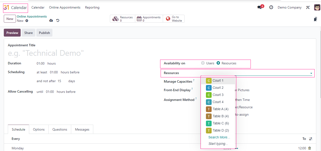 In the latest update to the Appointment feature , users now have the ability to view the available Company Facilities and Space when scheduling appointments of the resources.