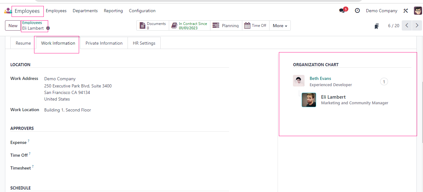 Odoo 17 introduces a department organization chart that enables one to easily visualize the company’s hierarchy structure. This fosters a clear understanding and collaboration among team members.