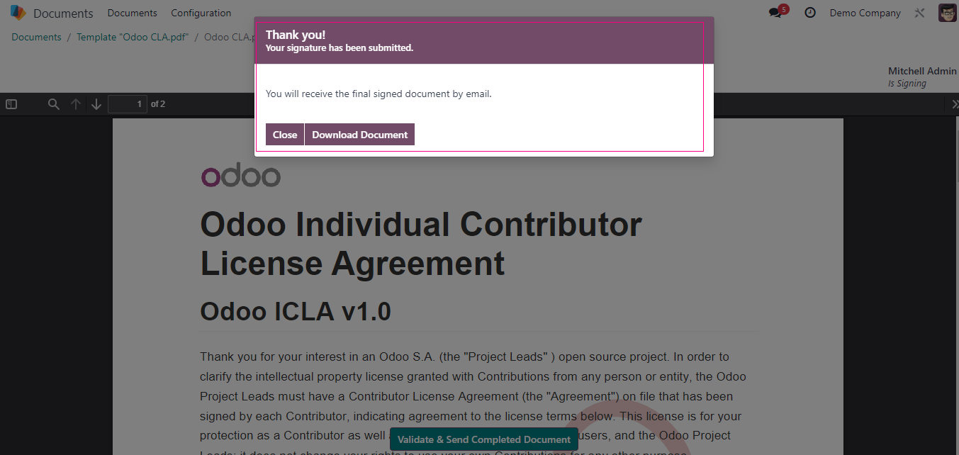 Odoo 17 introduces automated reminders within the module , ensuring users stay updated on documents awaiting signatures.