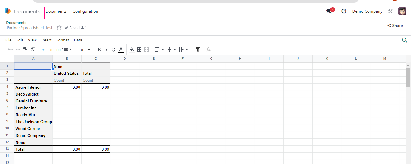 The collaborative capabilities of the spreadsheet feature in Odoo 17 are amplified through the addition of the Share Snapshot viewer. This enables users to collaborate effectively by granting access to specific reports.