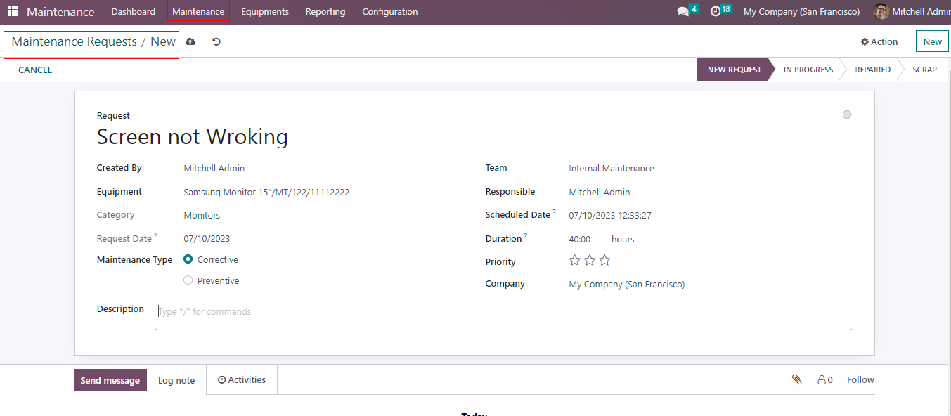 Maintenance Request is crucial for minimizing unexpected equipment failures and maximizing uptime. By defining maintenance activities, schedule, and intervals, you can ensure that maintenance tasks are performed productively, reducing the risk of equipment breakdowns and optimizing equipment performance.