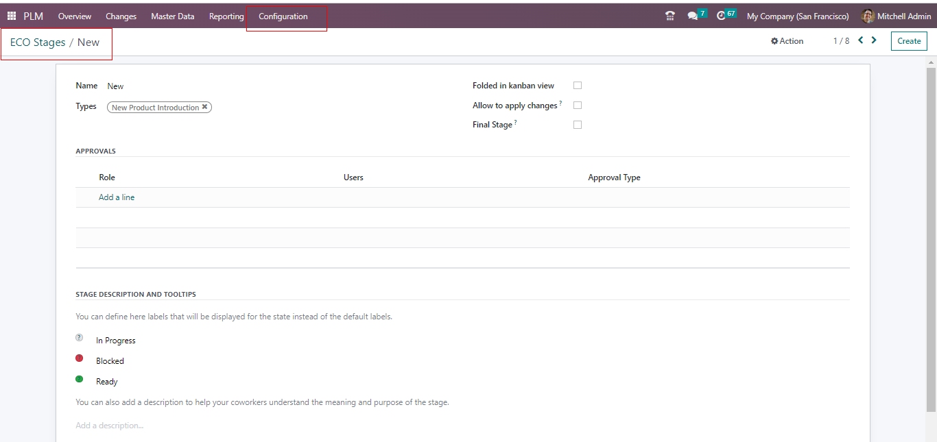 ECO Stage : defining the stages that a change request undergoes before implementation .