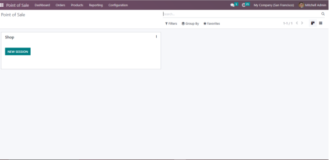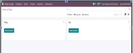 Let’s see how orders are taken and recorded in the Odoo POS module. You can select the NEW SESSION from the Point of Sale located on the dashboard