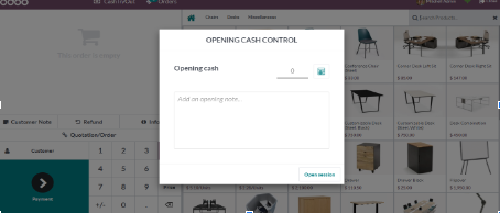 As soon as you enter into the new session, a pop-up will appear to set an opening balance at the PoS cash box.