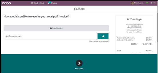 The Receipt will be displayed on the right side of the screen , print the receipt by selecting the Print button. Also , the receipt can be emailed to the given mail id.