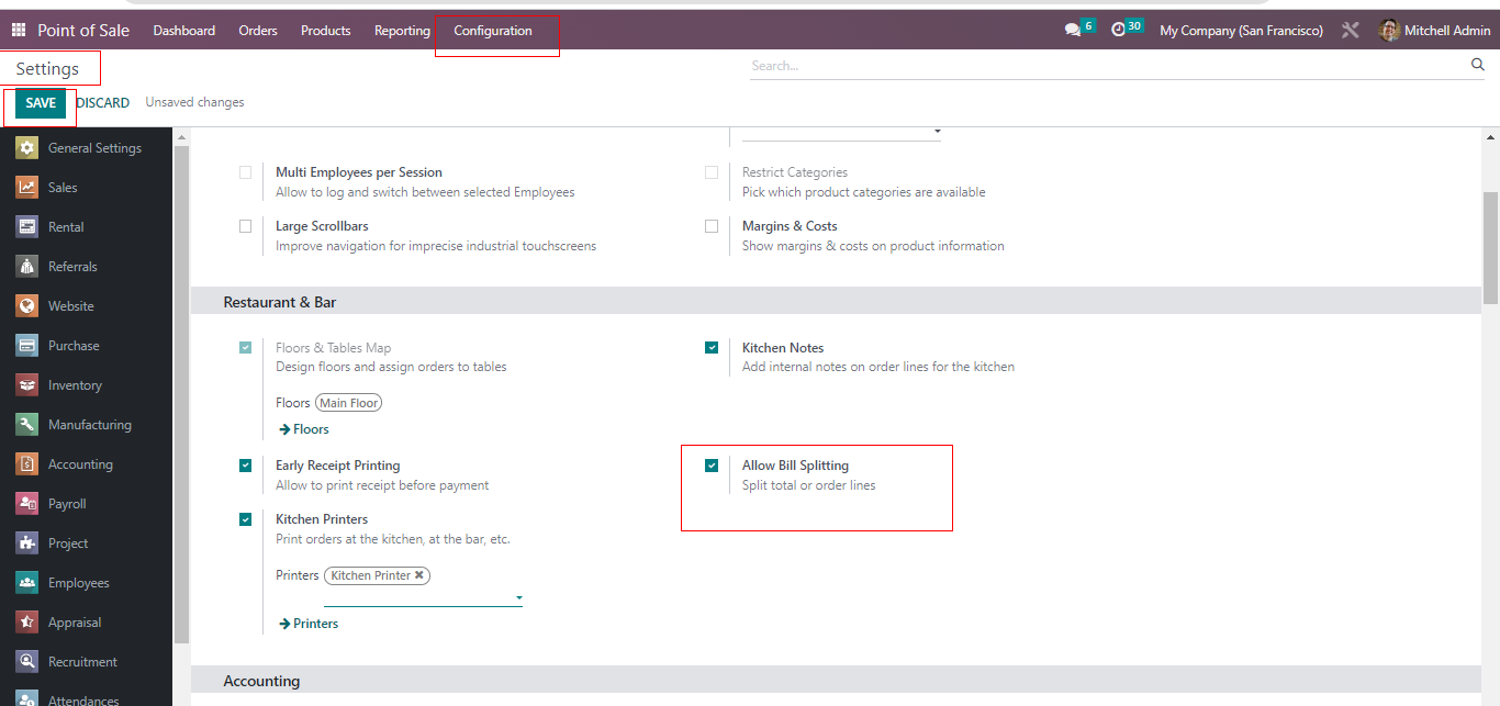 Next up is the Allow Bill Splitting feature , which can be activated within the settings of the POS module.