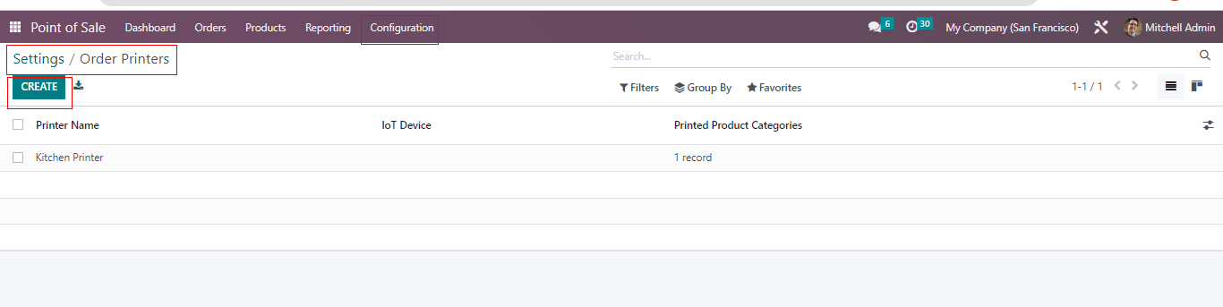 Users also have the capability to generate Order Printers through the configuration menu, as shown below.