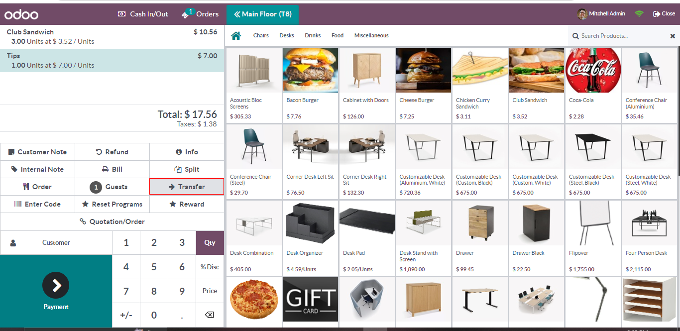 In Restaurant management , another valuable feature is the Transfer option. After an order has been placed , customers may occasionally need to change tables.