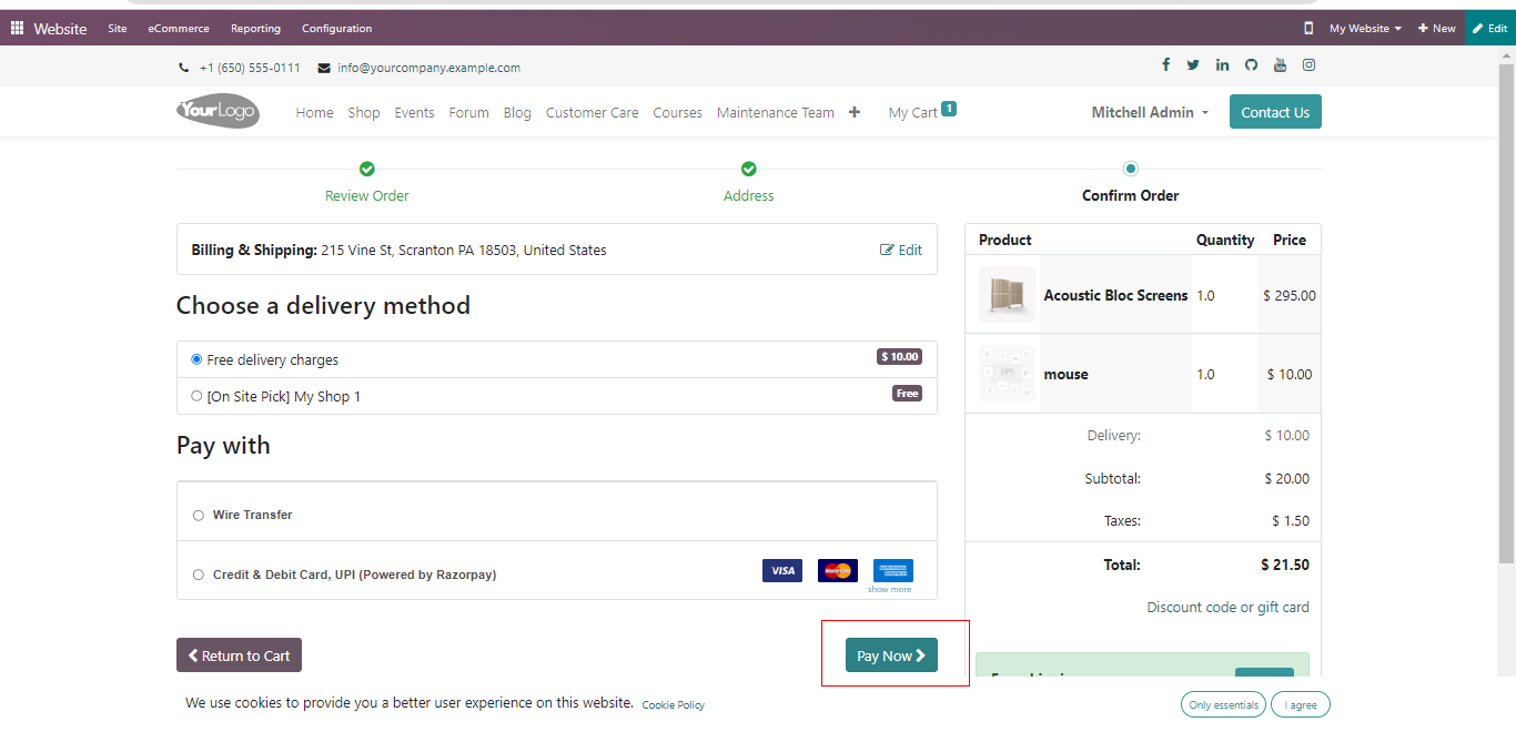 Once you have selected the preferred payment method , click on the Pay Now button to finalize the transaction. After successfully making the payment , let’s take the order details . To do this , navigate to the eCommerce tab and select Orders from the list.