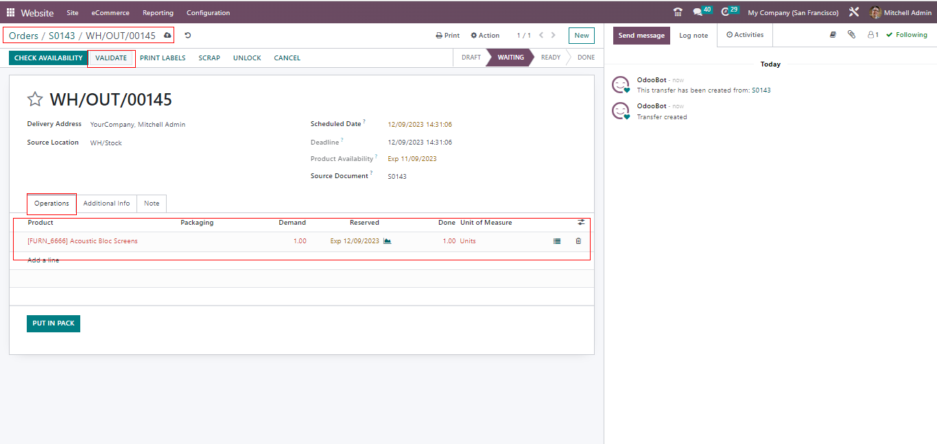 To fulfill the order , the user should access the Delivery section. Here , perform the necessary quality checks and subsequently validate the delivery.