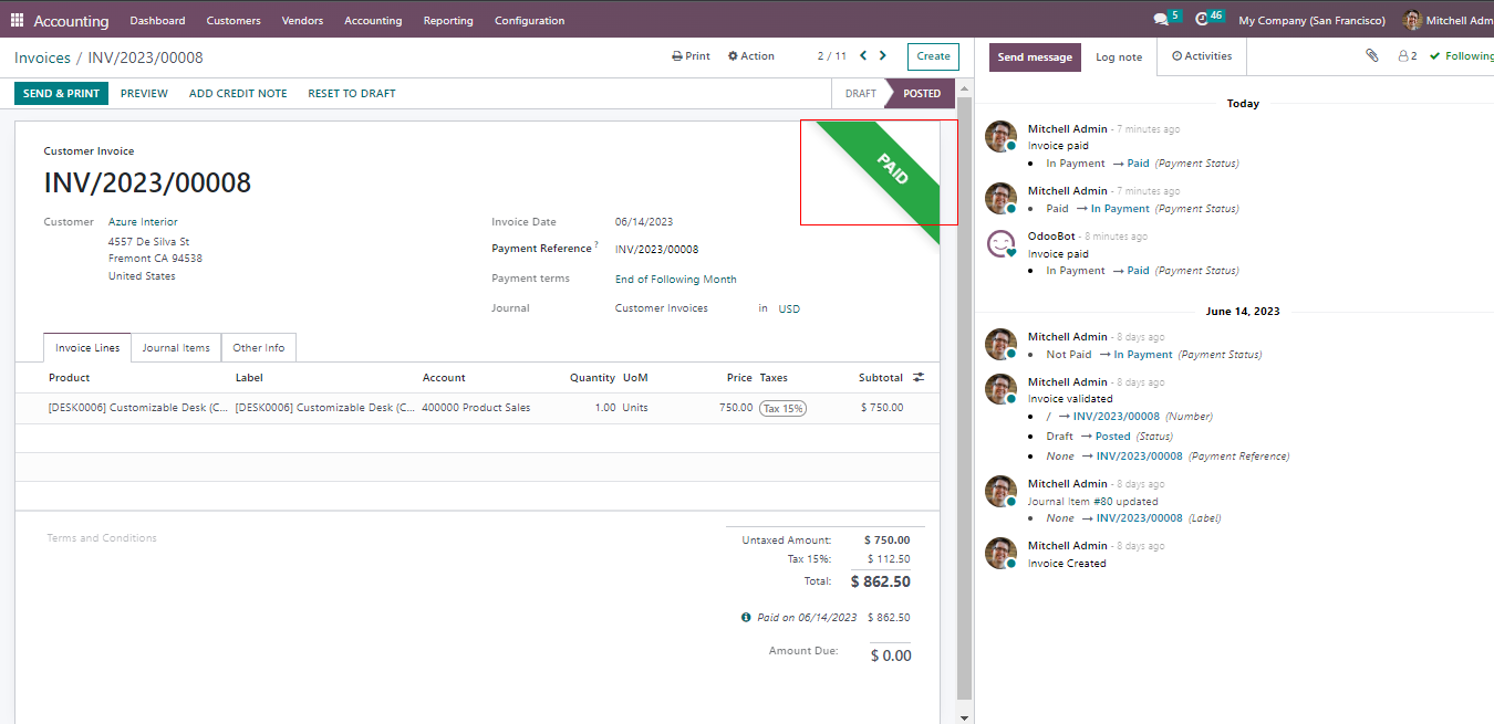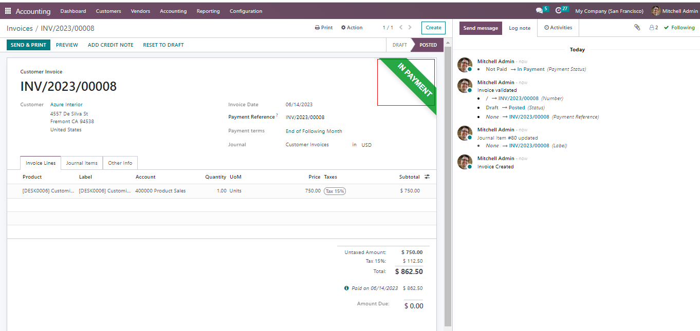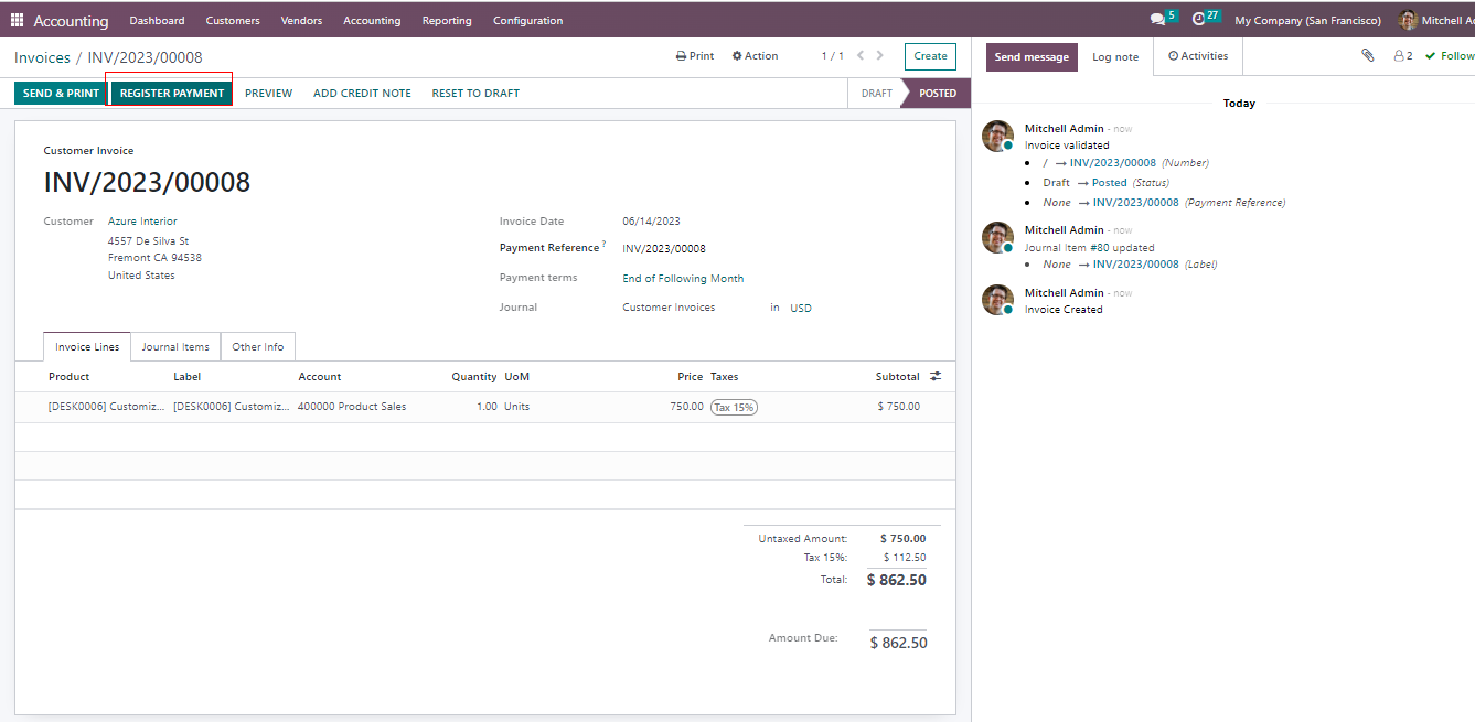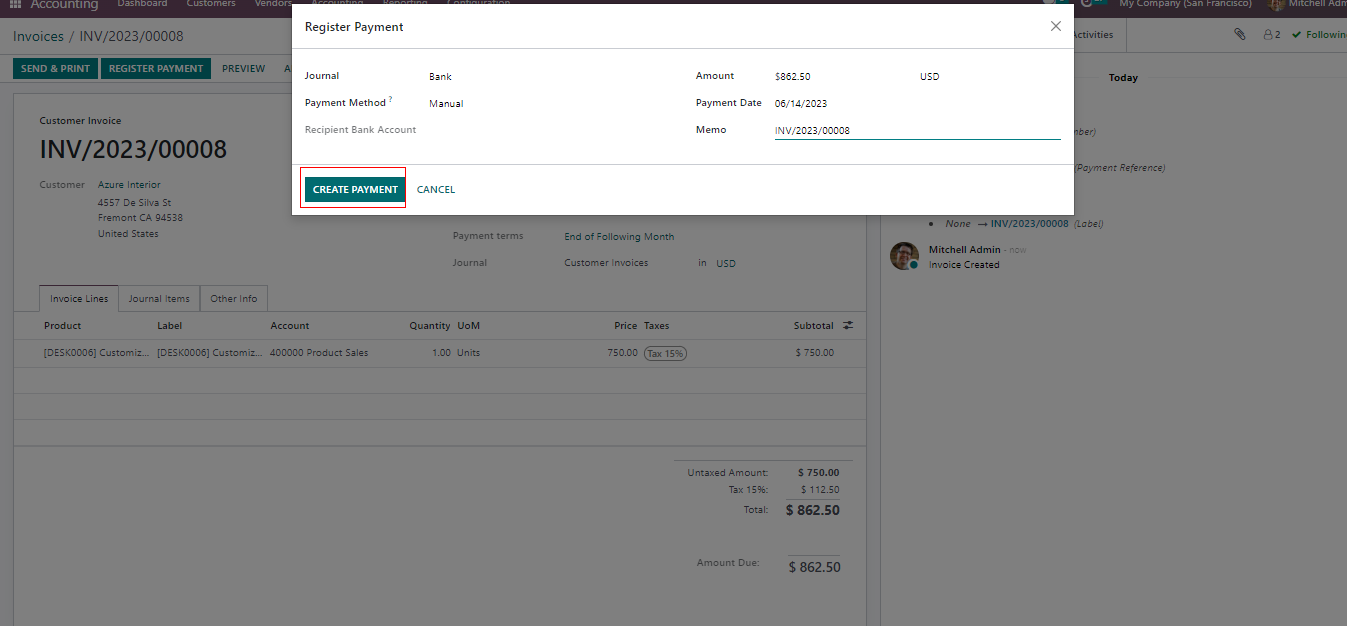 Click on the confirm button and follow the Register payment process . When Customer pays an invoice , By associating the payment with the respective bank account, you can accurately track and reconcile the payment against the invoice. The system maintains a clear record of payment details, ensuring transparency and simplifying the bank reconciliation process.