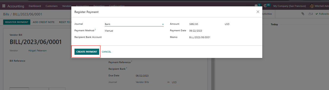 In addition to customer invoicing, create vendor bills seamlessly. When you receive bills from your vendors, you can easily input the necessary details, such as vendor information, invoice date, due date, and line items. By creating vendor bills , you establish a link between the payable amounts and the bank reconciliation process.