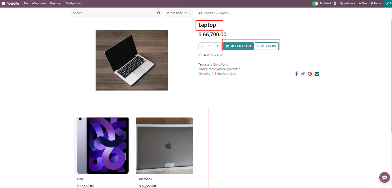 Creating and managing these upselling components within Odoo 16 is straightforward. You can conveniently configure these elements during the product creation process. Moreover , customers can easily access the enriched product pages through the dedicated eCommerce section within the Odoo 16 website module. This seamless integration ensures that your upselling efforts are both efficient and customer – centric , contributing to an enhanced shopping experience and bolstered customer loyalty.