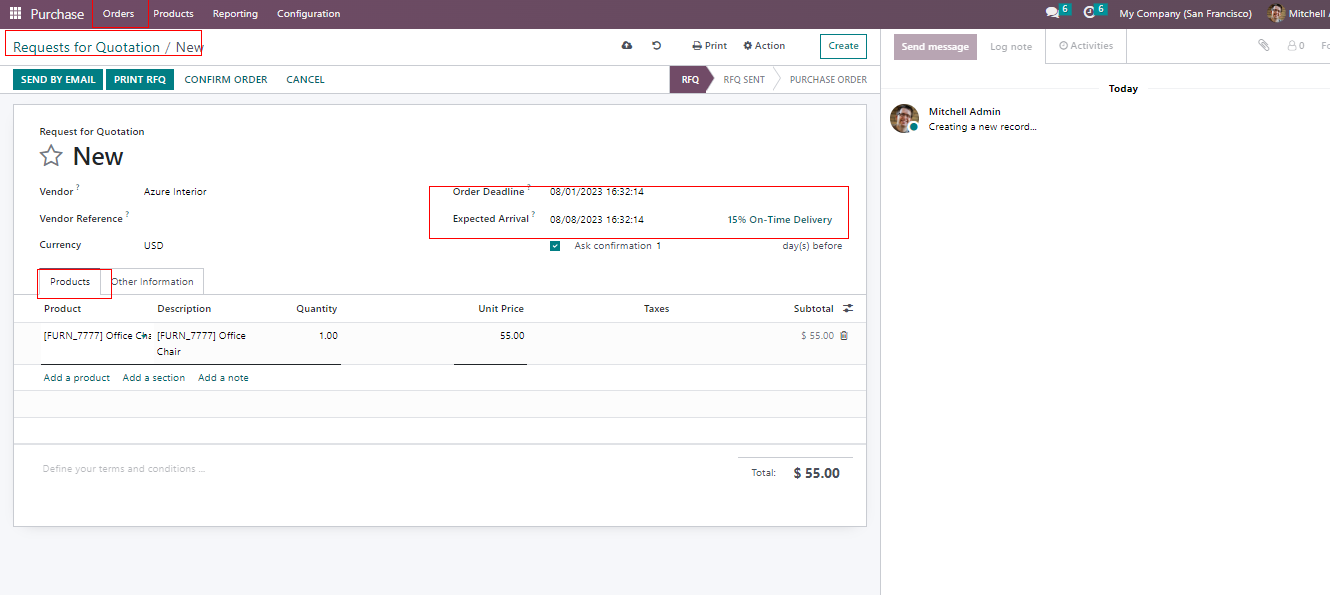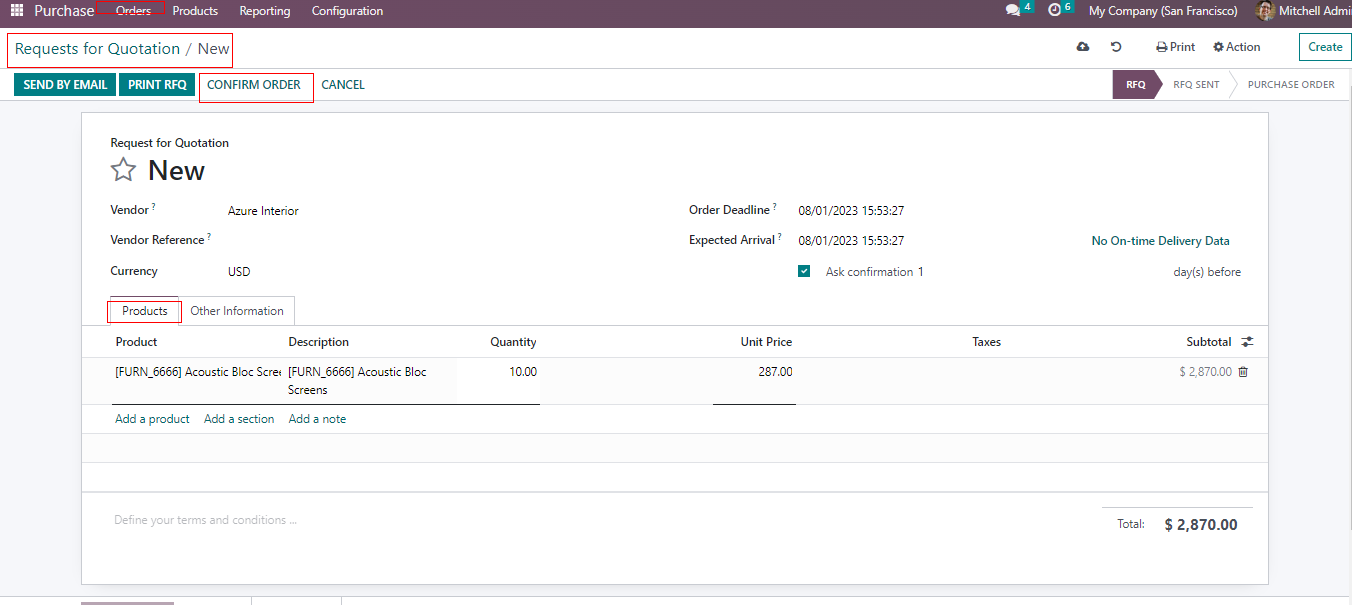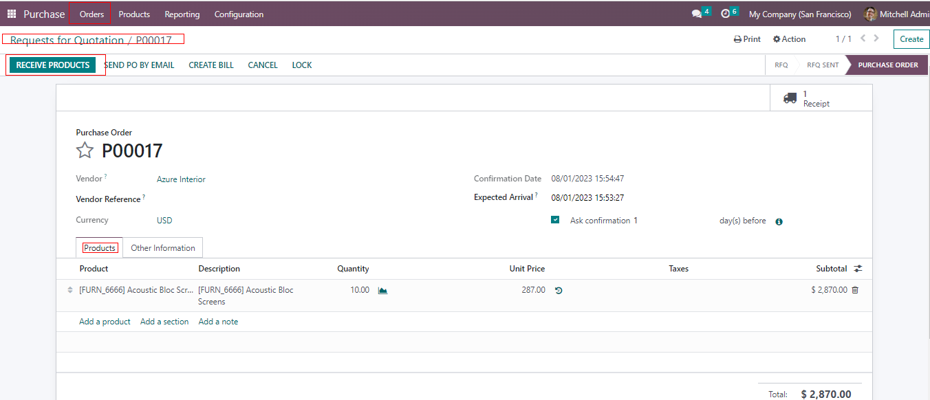 Let’s proceed by creating a purchase order for the product Breads and then assign the lot/ serial number during the validation of the receipt.