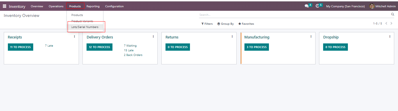 You can now access the Lot/Serial menu from the product tab within the inventory module. This menu allows you to manage and track the lot and serial numbers associated with various products, enabling you to efficiently monitor inventory movements and maintain accurate records.