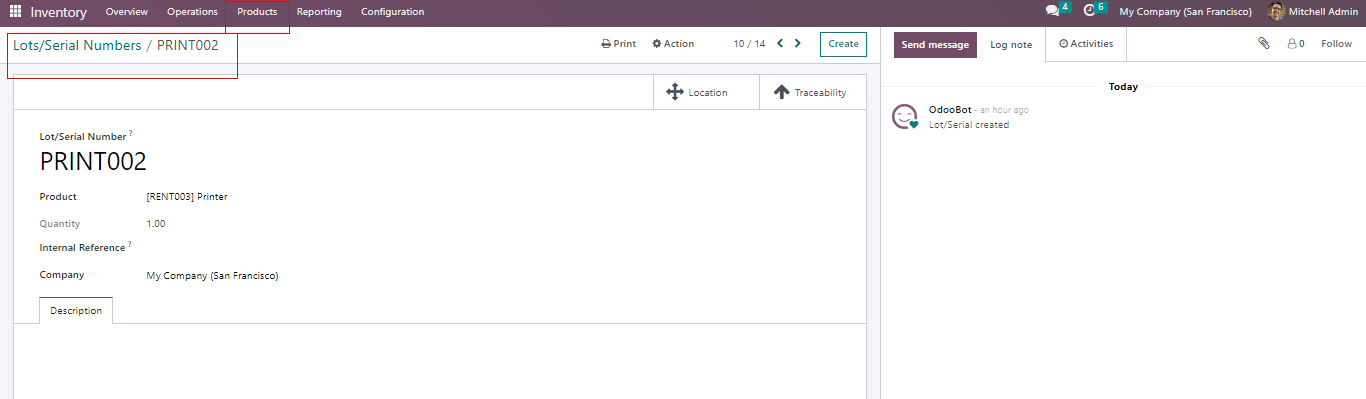 From this section, you have the option to create a new Lot/Serial number for a product. Once created, you can utilize this tracking number when purchasing the respective product. This enables you to establish a unique identifier for the item, ensuring effective traceability and management throughout its lifecycle.