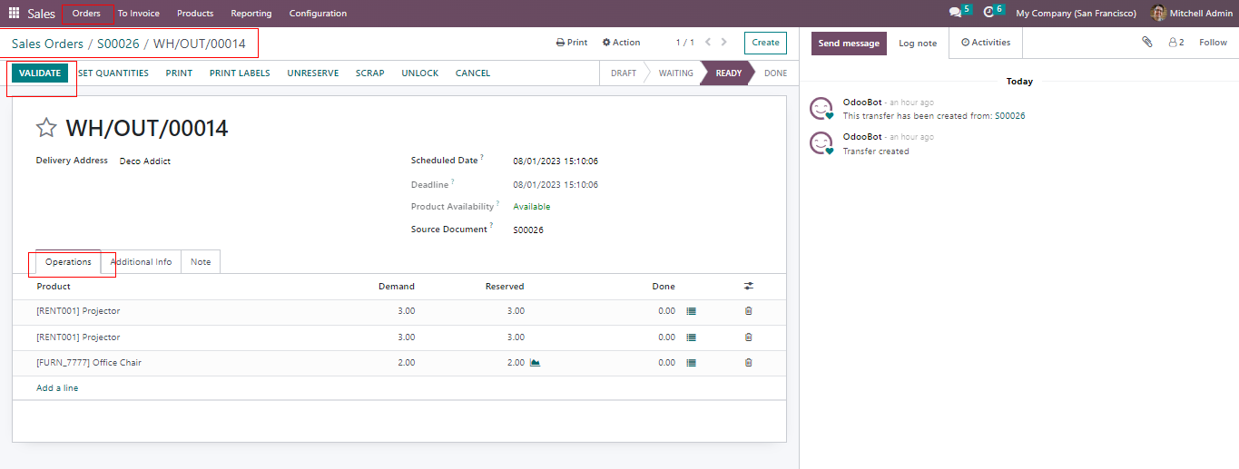 Let’s Proceed by creating a sale order for the product that has the tracking method enabled for lot/serial numbers. Once the sale order is created , validate the delivery of the product.