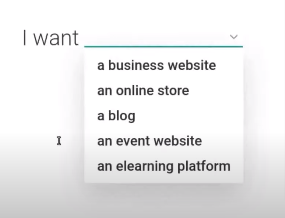 It asks whether you want to create a business website, an online store, a blog, an event website or an elearning platform. Then choose for whom you want to create this website for.