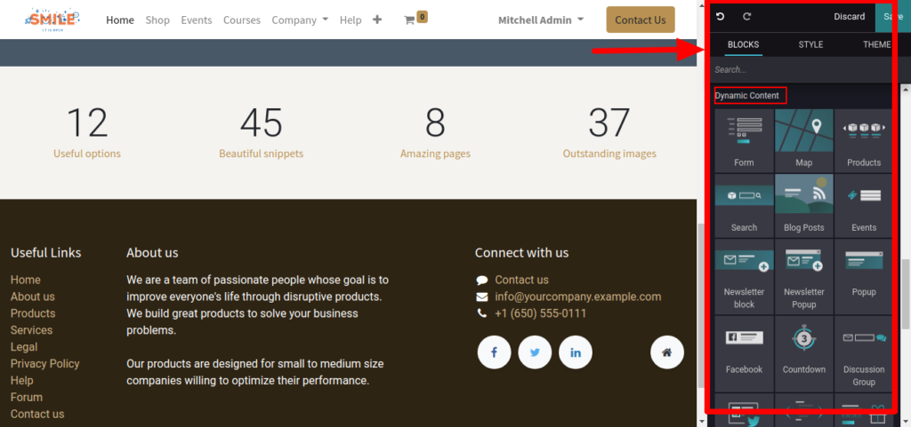 The website builder in odoo 15 is now 35% faster as compared to version 14 with a bucket full of really amazing features and is responsive so no need to design a new one for your smartphones or other devices. So let’s dive right into it without further ado.