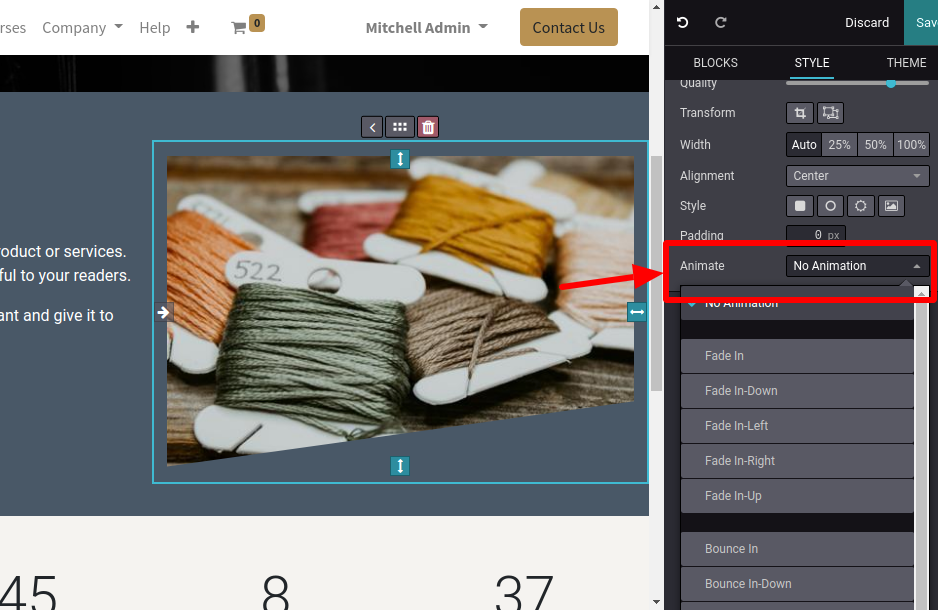 You have a fine control of what you want to show and how you want to do it. There is animation in background shapes which is also a new feature of odoo 15. The shapes and designs you choose are subtle and sometimes it moves and it changes. You can customise any blocks and for blocks you have templates. You have templates on pretty much all the blocks.