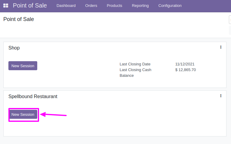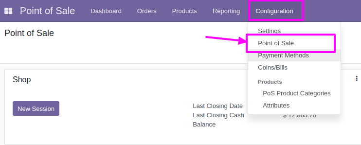 - CONFIGURATION -> POINT OF SALES -> CREATE