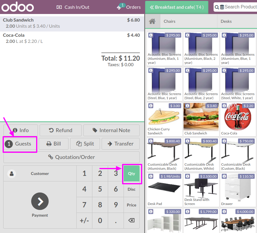 - Just click on those items and they would be added. You can manage the quantity from her itself. And also define how many customers are there.