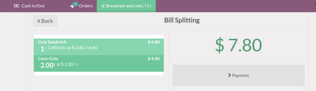 - There are 2 guests and they would like to split the bill. Click on the Split button. Let’s say one customer would pay for a sandwich and a cake. While the other just for the sandwich.