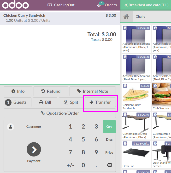- Let’s assume the customer sitting on table T1 wants to be shifted to T4 since they have a door draft. And they had ordered a club sandwich.