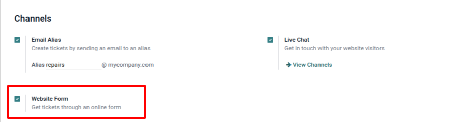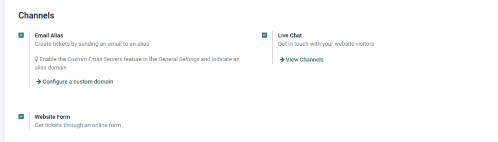 The customer can also create a ticket through a website. For that select the website form under channels in the edit team.