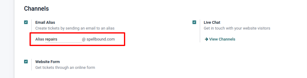 Below that make sure the Email Alias is selected. As well as Website Form.