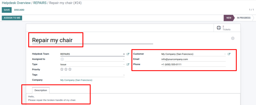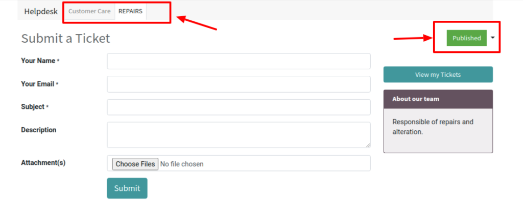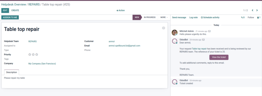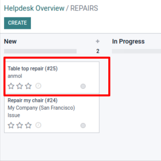 It will be automatically created in a ticket under the REPAIRS team at the New stage.