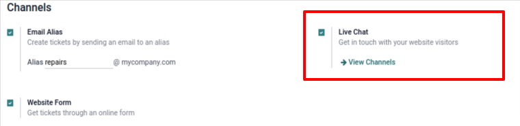 Now we can also create tickets from live chat as well. For this check the live chat option selected under channels in the edit team.