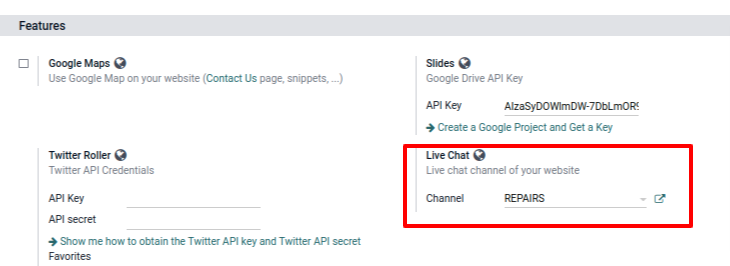On the settings page scroll down to the live chat section and make sure we have this channel selected on the live chat channel.