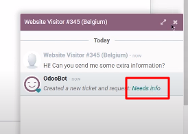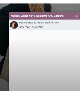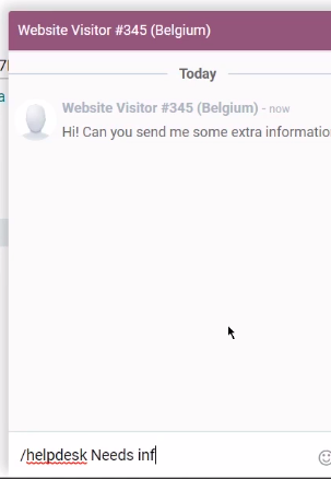 Now when you go back to your odoo website. You can see the message pop up. From here you can directly generate a new ticket by typing /helpdesk followed by the title you want to set on the ticket.