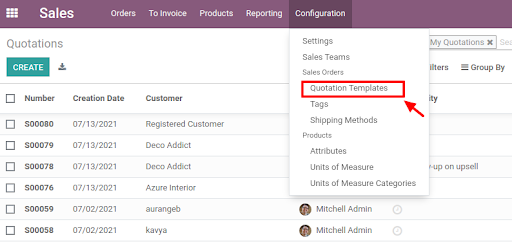 - SALES -> CONFIGURATION -> QUOTATION TEMPLETE -> CREATE